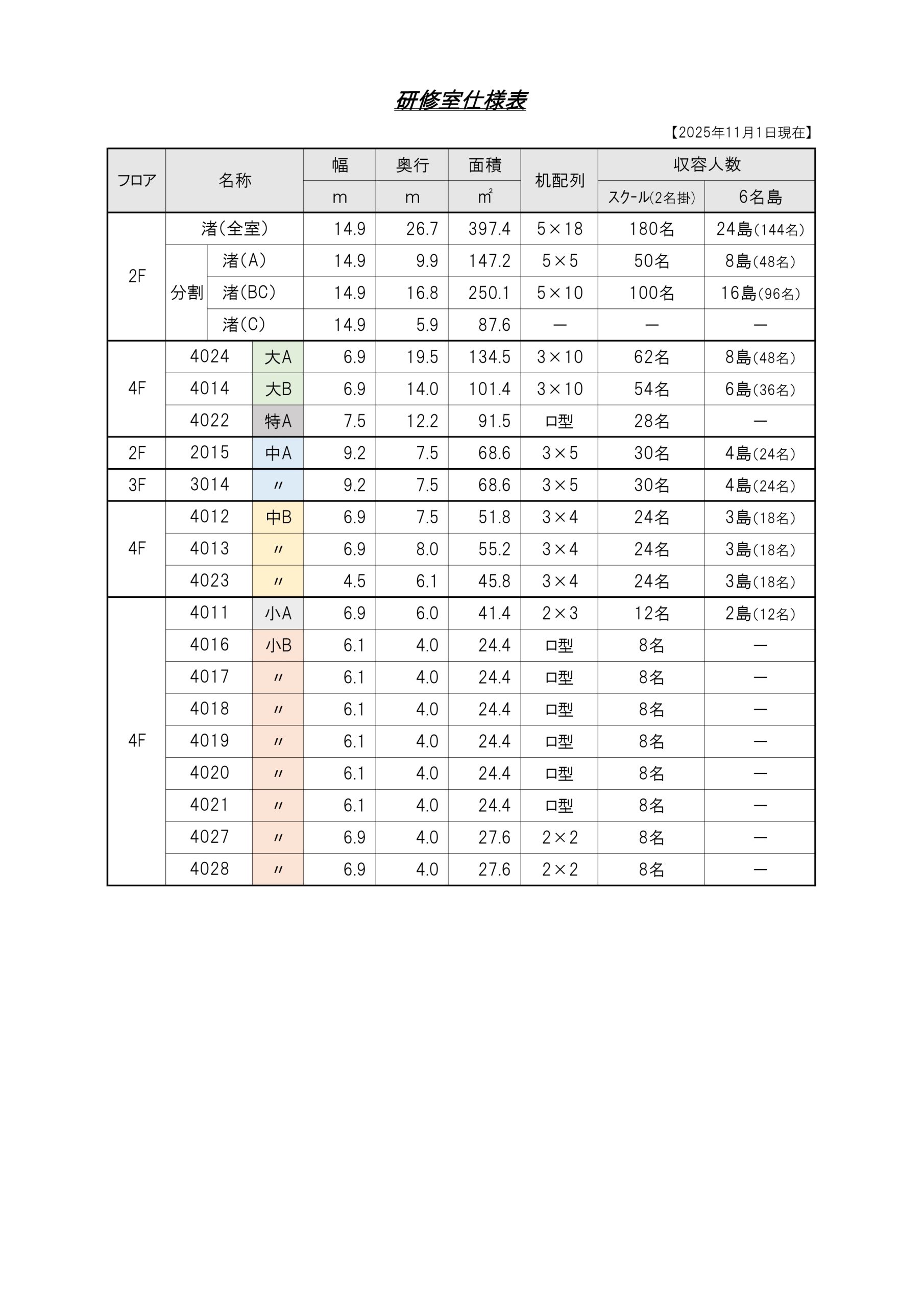 研修室仕様表